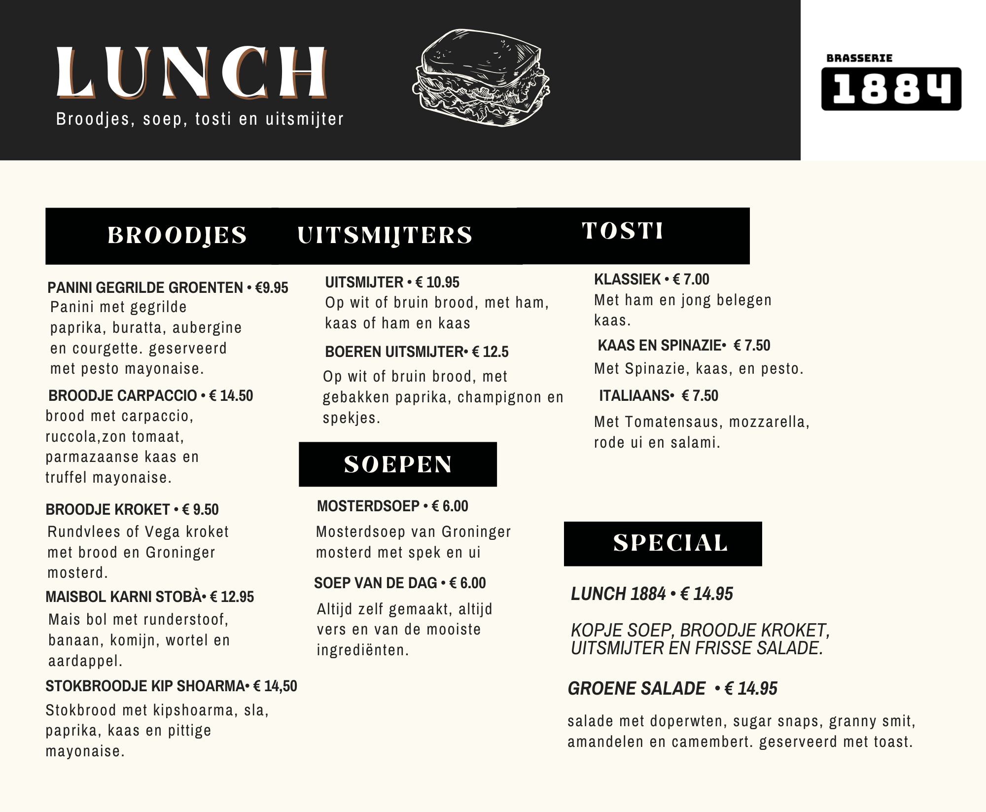 Team Brasserie 1884 wenst u smakelijk eten en een fijn bezoek aan onze brasserie.